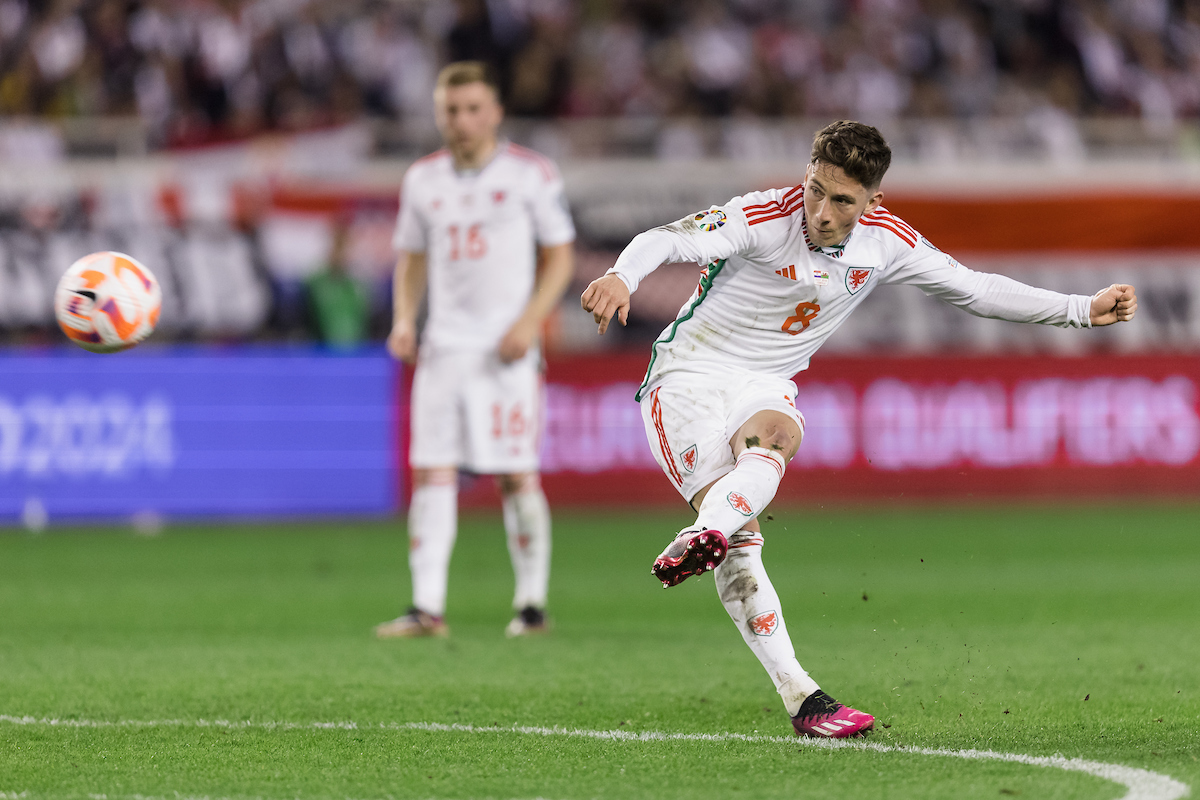 Harry Wilson tries his luck from the edge of the are in the opening half but his set-piece effort narrowly clears the crossbar.