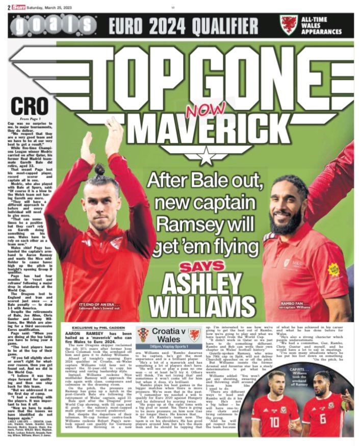 Former Cymru captain Ashley Williams believes the armband will bring the best out of Aaron Ramsey as EURO 2024 qualifying begins in Croatia this evening. “Rambo deserves to be captain,” said Williams in The Sun today. “He’s got the most experience and is a brilliant player. He’s a bit of a maverick and has something a lot of players don’t have. Rambo plays his best games in the biggest matches when there is more pressure. We’ve seen that in the past.”